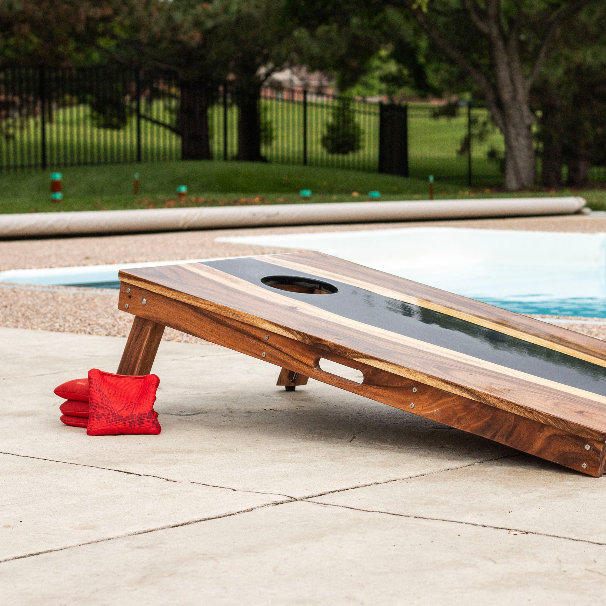 2ft x 4ft Resin & Wood Classic Cornhole Set | Live Edge River Collection
