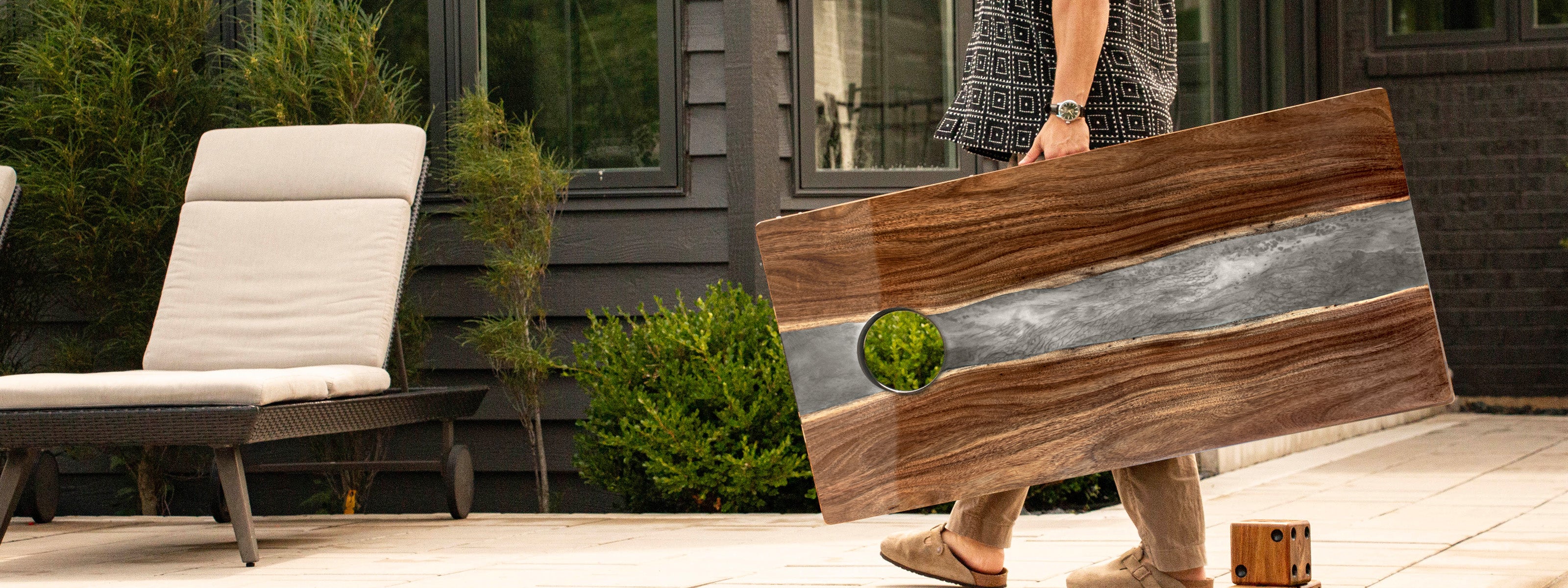 1ft x 2ft Resin & Wood Travel Cornhole Set | Live Edge River Collection