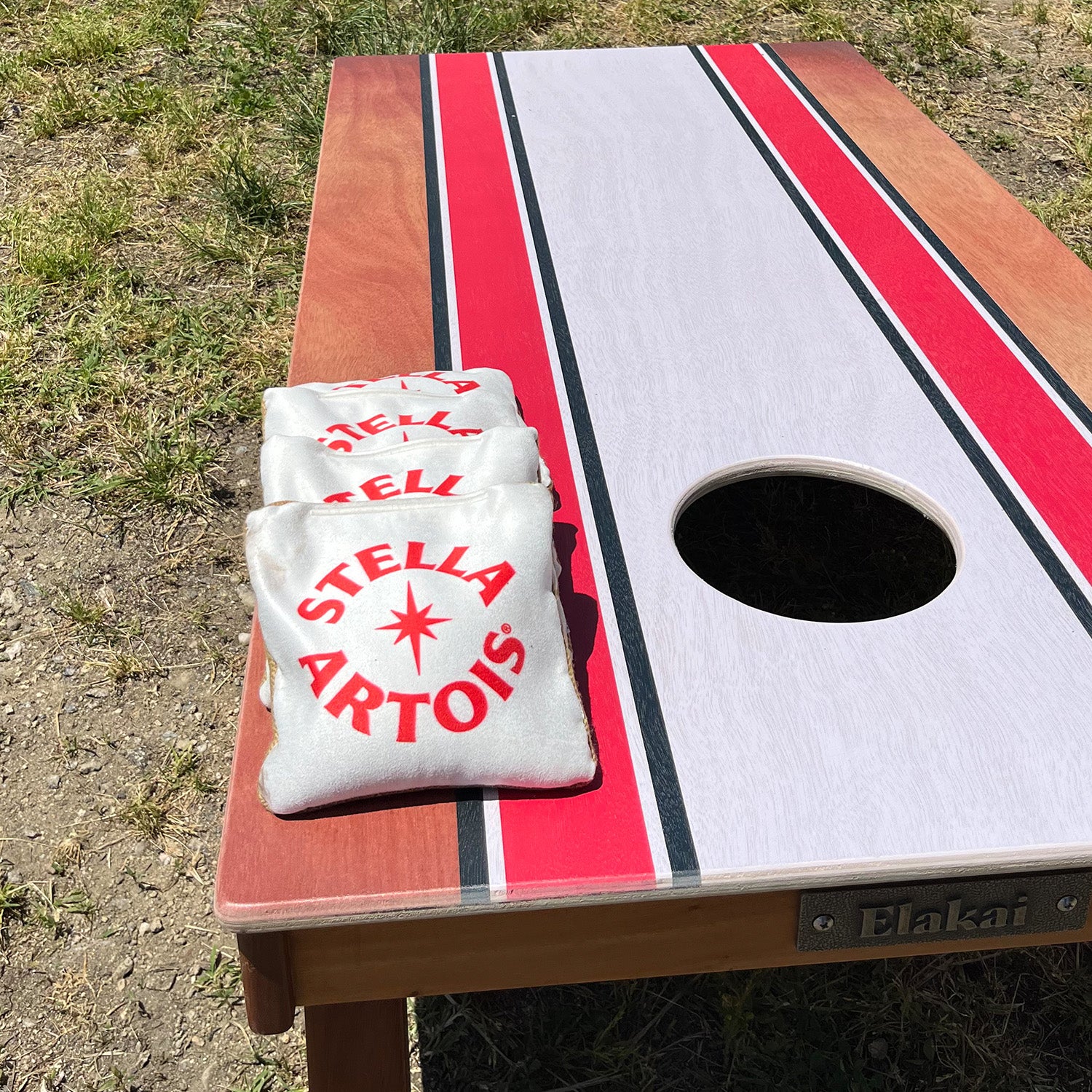 Elakai designed custom cornhole boards and bags just for the occasion, featuring co-branded details that matched the vibe of the event: classic, clean, and made for shared moments.